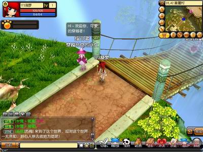 在游戏界面左上是人物的状态栏;右上角的是小地图,除了有时间系统外还有独特的自动寻路系统,在小地图和大地图都有显示目标任务NPC的位置。界面最右边一栏为系统菜单,点击可以查看人物属性、宠物信息、包裹、任务、好友、技能、系统设置等信息。界面最下面一栏则为技能菜单。左下角为聊天对话窗口。