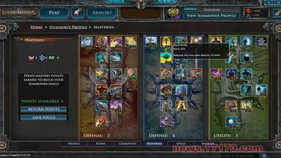 3、召唤者本身拥有一个类似WOW天赋系统的专精系统,这个专精系统必须使用每次升级所获得的“影响力点数”来配置强化,分攻击、防御和大招三个方面,攻击专精可以强化基本伤害等等,防御专精则可以减少英雄复活等待的时间(3点减少10%),大招专精部分我们了解的并不多。这些专精并不会对战局产生决定性的影响,却可以从很多小方面来一点点聚集优势。(文:17173 晨星)
