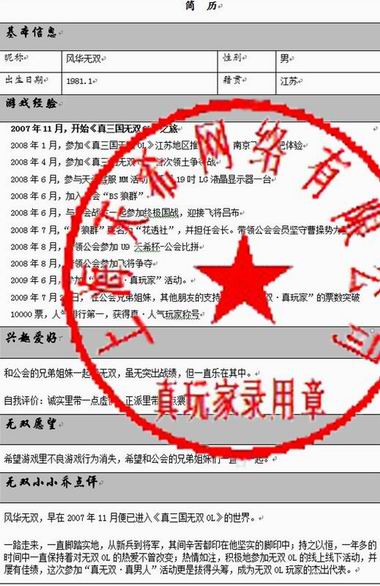 2009年7月16日,天希网络《真三国无双OL》全新资料篇——神将乱舞,已经正式降临。24人乱战、自制炼成、狼副将、赤壁之战等全新内容一一开放。迎全新资料片“真无双。真男人”活动也已接近尾声,活动开启至今,受到众多热情玩家的大力支持,截止今日,第五位真玩家终于亮相。在不到一个月的时间中以万余支持数高居榜首,超高的人气促成他成为“真。人气玩家”,他就是来自电信一区的“风华无双。常山”。
