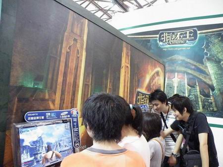 7月23日,中国游戏界最大的盛会——第七届中国国际数码互动娱乐产品及技术应用展览会(简称ChinaJoy)在上海新国际博览中心正式开幕。一时间各家展台美女如云,玩家们蜂拥而至,在美女ShowGirl的陪伴下,参加游戏赢取周边,试玩游戏感受激情与快乐。今天是CJ的第二天,位于W2馆07展位的中华网游戏集团展台,不仅人头攒动,热闹非凡,其今夏强力推出的魔幻网游《指环王OL》的体验区也是挤满了想要试玩的玩家,十分火爆。