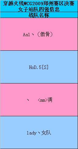 女子战队四强名单:
