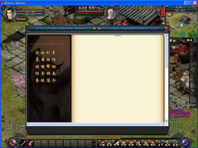 游戏中,窗口上方的滚动公告将轮回提示《昆仑Online》的重大活动与游戏咨询。而窗口的右上方设有帮助界面,只要单击【帮助】按钮,玩家就可以根据自己的需要获得游戏操作指南,随时解决遇到的疑难杂症。
