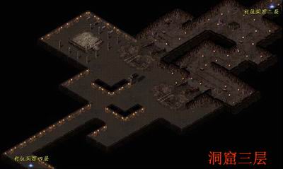 本阵营:洞窟三层(60-65级怪物)和洞窟四层(65-70级怪物)