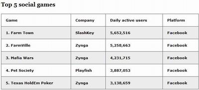 作为现今社交游戏产业中最大的一家公司,位于旧金山的Zynga自2007年7月成立以来,仅用了2个月就实现了盈利。该公司的首席执行官马克·品卡斯(Mark Pincus)表示,今年保守估计营收将超过1亿美元。