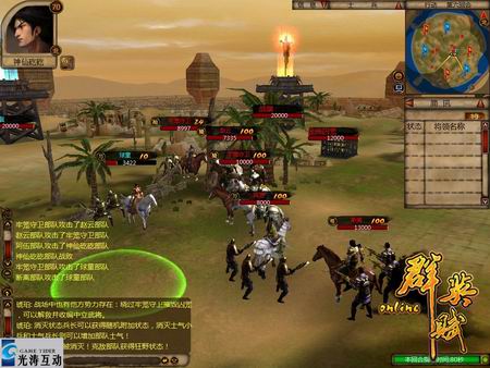 同样的夺旗,但是在一片荒芜满是沙砾的荒漠当中,一眼望去尽是沙城,只要能够抢下最多的城旗的玩家,就是最终的赢家!!在《群英赋Online》沙城当中,玩家不用担心主城被偷袭,只管奋力往前冲夺下城旗,在这个无城野战的PK关卡中,玩家不需要运用指令或是特别讲究盟友间的合作战略,战局中比是玩家的体力跟移动速度,还有谁有能耐抢得快狠准!此战局中将提供新手玩家另类的策略玩法,让玩家在刺激的争夺中,轻松进入策略网游的世界!