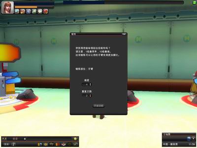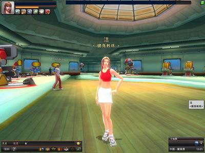 健身房位于中央广场的东边,与射击馆相连。健身房目前已有跑步机、哑铃、屈腿训练器、平卧推架、假人拳击架。今后还将推出更多有意思的健身项目。这些健身器材有序地分布在健身馆各个地方。 每个健身项目都有各自的玩法。如果你是第一次来健身,可以找健身教练“洁”和拳击教练“家怡”帮忙。他们会交给你健身的方法,并且还有任务交给你哦!做任务可以得到很多经验和奖励。 健身项目做的好,同样可以创造记录。你是不是想成为健身王子,让其他朋友们都能在世界排行榜里找到你的大名呢?那就要加紧练习哦!每个健身项目都分为难度和重复次数2个选项。你可以根据自己的需要进行选择。健身难度高可以获得的分数上限自然更高,但是要考虑到自己的技术水平哦,不能一味追求高难度。重复次数可以根据你的需要来定,最多重复5次。 每个健身项目都是为你身体的某一个部位强化而设定的。比如哑铃可以提升你的手臂力量,屈腿训练器能提高你的腿部力量,假人拳击架能提高你的爆发力和身体协调性。通过反复健身练习,你的身体属性就会提高!同时,身体属性提高了,那么运动能力将明显提升哦!