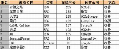 韩国网游平均单次启动在线时间排名:蜀门仅次魔兽、永恒,以下数据来自韩国权威网站“DG Ranking”。