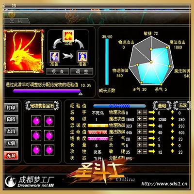 玩家宠物喂养的好坏直接决定了宠物的忠诚度。宠物是否攻击或防御与宠物的忠诚度有关。忠诚度越高,发动攻击或防御的概率越高。所以玩家们可是需要精心照料自己的宝宝哦!宠物到达20级后,可以进行灵魂唤醒(炼制),让你心爱的宝宝升华到更高的品质。宠物的品质分为未唤醒-封印-隐匿-杰出-天骄-无双。每次升华,宠物的品质随机属性,和成长点数都会随机改变,如果你对当前值不满意,可以通过“重铸”功能来重新获得这些随机数。如果你对以前宠物的成长不满意,还可以通过“凝华”的功能来将品质降低到前一个品质。无论升华,重铸,凝华,宠物的等级都将降为1级。而血统等级决定了宠物天生的优劣。这是宠物天生的属性,只有通过用众神之意志碎片炼金才能提升。品质的优劣直接决定着宠物的成长,因此,要想培养一个好的宠物,就要从宠物低品质时,就追求尽量高的成长点数。