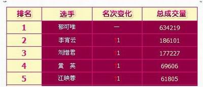 在湖南卫视快乐女声合作伙伴网络游戏《梦幻龙族》中,根据游戏内实时“**股票”的数据显示来看,郁可唯占据了绝对的优势。