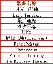 以下是中韩争霸赛线上比赛选用的10首歌曲