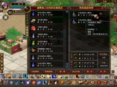 在游戏中打怪、任务、无论干什么都离不开生命药水和法力药水,从最开始的肉片、牛肉面到烤乳猪、小生命药水、中生命药水、中法力药水等等,琳琅满目的药水让我们可以根据自己的需要选择,可是随着我们等级愈高,我们的能力越来越强,我们也需要更强大的药水来补充我们的体力,所以现在龙城和幻海秘境的道具商人处都开始出售新的大生命药水和大法力药水了。