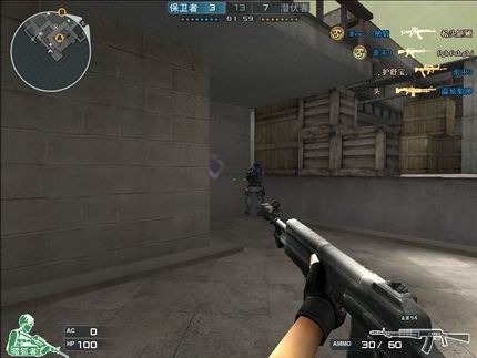 而在供电所地图中,第一招和第二招都很管用,地图中有很多箱子、掩体、管道等,预先蹲点往往效果理想。在A点B点放包的位置有很多箱子,并且后面完全可以藏人,你可以躲藏好等对方埋包或者拆包的时候来个出其不意。躲在B门后按个Ctrl键蹲下,根据声音判断好对方位置,等声音远了再出来,从后面偷袭!阁楼内过去,正对着狙击位置的天桥有一个万年不变的camp地点,就是墙角的箱子旁边,虽然人人都知道这个地方,但是因被人阴死而懊悔不已的事却屡见不鲜。所以不怕一万就怕万一,找个隐秘的地方放几枪再去。A到B的地下出口,蹲着走过去从后方突袭。保卫者在A点的楼梯下,旁边有好多箱子遮挡,完美躲藏点。在通B门弯道处的墙角往往是阴人圣地,一不注意被阴的几率相当大,一定要警惕!