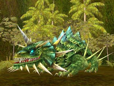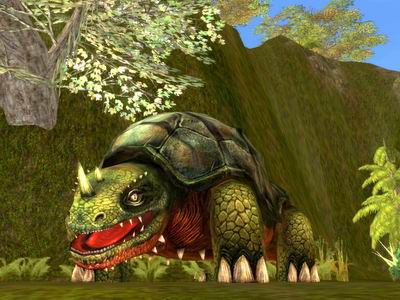 斯坦伯勒多角兽可谓是雨林地区的一位霸主。虽然它的身躯并不如巨灵龟那样巨大,但是那些尖锐异常的牙齿和锋利无比的骨质角刺,暗示着它决不是什么性格温和的食草动物。不仅如此,多角兽还具有调节自身肤色,使其融合在周围环境的特殊能力,更利于它们捕捉猎物。