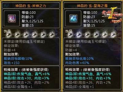 “斧神之力”和“星海之露”是《武林群侠传2》橘色千里系列装备中的饰品部位,在游戏中极难获取,只能收集各种材料通过合成系统获得,更凸显其珍贵的程度。而《武林群侠传2》“激情七夕”版“神饰生辉”活动,面向所有玩家派送神品的玄级“斧神之力”一对或“星海之露”一对,以及高强化星级的“斧神之力”一对或“星海之露”一对,因而受到了广大玩家的热烈欢迎。