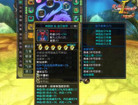 炬日套装是由二转100级的神品炬日套装进化而来,它的附加效果和技能分别如下:
