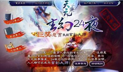 《天元》“玄幻24夜”小说连载活动已经于8月17日,在《天元》官方网站、新浪网、17173游戏网、幻剑书盟小说网四大赛区同时拉开帷幕。这一与《天元》游戏世界的口号“人人都是玄幻大师”宗旨相符、志在打造玄幻新星的活动,在活动推出后头天就引起了众多玄幻小说迷的关注。