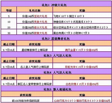 五重双倍惊喜只是给你热热身,惊喜的还在后边呢!加入QQ炫舞两大新区还能获得超值的五大丰厚礼包!