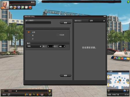 为了让玩家能方便的在游戏中找到比赛的对手,结识新的朋友,《体育帝国》提供了方便快捷的玩家搜寻系统。玩家只要点击F8或者L键,相关界面就会弹出。玩家可以根据姓名,各运动项目等级来搜索玩家。这样,玩家就可以找到与自己喜欢同一项目的玩家,也可以搜索在线的玩家,相约一起比赛。