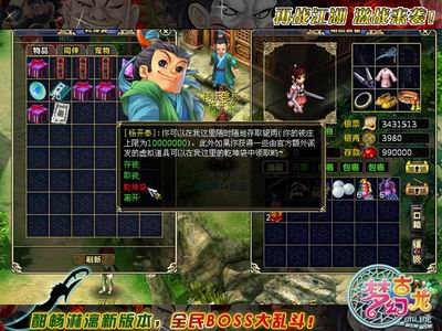 在苦恼游戏中你囊中羞涩寸步难行吗?在尴尬你空闲有限无暇练功吗?在懊恼运气不济同伴都平庸弱小吗?这些都不再是问题!为了感谢十数万玩家至始至终的支持和鼓励,在新学年到来的这一刻,《梦幻古龙》送上大礼一份!人人有惊喜,个个不落空!