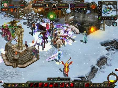 离战争开始还有一个半小时,游戏中各路人马已经集结到位。整个屏幕中到处是人,尤其是战争报名处,人群更是里三层,外三层的将NPC包围。记者历经一番周折,才获得了加入种族战争的机会。