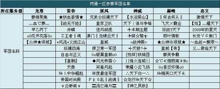 虽然说今年竞技赛有众多全新军团加入,但是我们依然发现了往届八强队伍的身影,如今六支强队再次报名参赛,力求重振辉煌,挑战自我。他们是:网通一区逐风-皇城、电信一区神域-〖梦想荣誉〗、电信一区皇朝-三国Ж狂战军团、电信二区天羽-☆天下☆、涅磐、蜀盟|帝国。今年竞技赛众多全新军团的加入,势必将打造一场更为激烈的全国军团竞技赛,09年全国军团竞技赛将是一场充满变数的比赛,让我们共同期待!