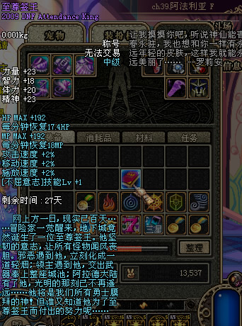 在DNF中有一类称号,是需要完成任务要求后获得的称号。其中最难完成,需求任务品最多的当属“不灭之王”,其属性可谓地下城中最强,最有价值的称号。为了得到它,勇士们除了付出努力与勤劳外,更是不惜花费重金打造,能够佩戴它的勇士,自是在地下城中拥有无尚荣耀。