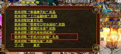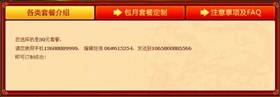 第三步:收到购买成功的短信后,登陆《传奇世界》游戏,前往中州NPC领奖使者(462 222) 便可领取“手机30元套餐”礼包。