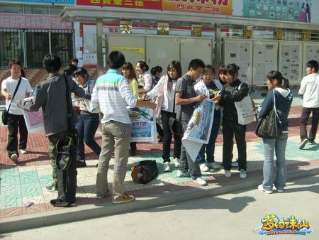 为了能够让更多的同学了解《梦幻诛仙》的游戏特色,白城推广站的工作人员们早早便来到了白城师范学院布置活动现场。当工作人员开始张贴海报、发放活动转单的时候,一下便吸引了很多过路的学生围观。这些学生得知是完美时空在为《梦幻诛仙》做地面宣传活动时,纷纷表示出了浓厚的兴趣。很多学生都向工作人员咨询了许多关于《梦幻诛仙》游戏特色的问题,而工作人员也都对这些问题进行了耐心细致的回答。