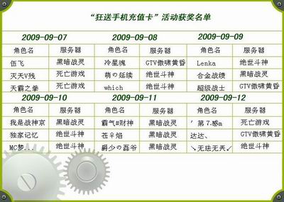而今,该活动先期火热小活动——“狂送手机充值卡活动”已圆满落幕,活动期间内的日奖和周大奖获得者全部闪耀出炉!