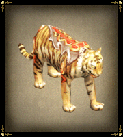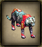 属孟加拉虎,变异为白色。惯于森林,夜行晓宿,擒兽为食,寿二十余。《西京杂记》记载云:有白虎现于东海,黄公为虎所杀。股栗,天生神力,常独自出战,后被抓捕,驯服后随军出征。