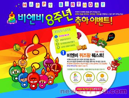 日前,韩国NEXON公司为了迎接旗下网络游戏《泡泡堂》的8周年,从10月8日开始到18日进行多种活动。