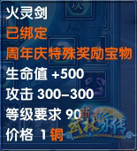 当然,除去外观不说,法宝主件本身亦有着超强的属性。目前开放的30级、60级、90级三种法宝,装备后均有攻击力加成的效果,90级法宝火灵剑还可以附加500点的生命值。
