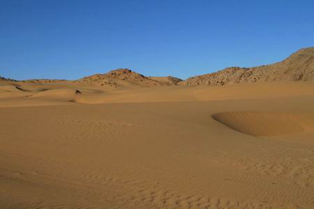 巴丹吉林沙漠:位于内蒙古阿拉善右旗北部的巴丹吉林沙漠,面积4.7万平方公里,是我国第三大沙漠,其中西北部还有1万多平方公里的沙漠至今没有人类的足迹。海拔高度在1200-1700米之间,人称”沙漠珠峰”。奇峰、鸣沙、湖泊、神泉、寺庙是巴丹吉林沙漠的“五绝”。
