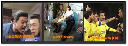 如果以年龄为标杆划分,你会发现在60、70、80后的前后三代人之间对网游的态度截然不同。60后这一代人通常就是现在90后的父母一辈,他们对儿女沉迷网游痛心疾首,对网游这一事物嫉恶如仇;70后正值事业成型期,根本无暇顾及网游这一事物,而他们的儿女年纪还小,尚未出现对网络的严重依赖性,所以对网络游戏可以说是漠不关心;80后则由于年少时受到电子游戏的影响,并且也第一代接触电脑的用户,相当一部分酷爱网游。所以你能看到对于网络游戏,60后在骂,70后无视,80后争辩,90后则被认定是网瘾患者,轻则受到家长的干预和打骂,重则直接送到所谓的网瘾戒除中心,更可悲的是还要被大家称为脑残。