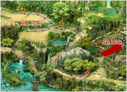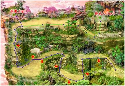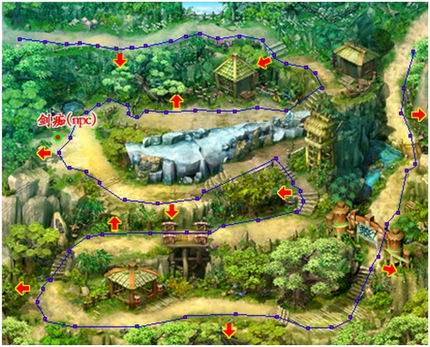 2.在途径每张地图时,都要按照规定线路行走,并且不会遇上山中的守卫藏剑人,否则即为没有完整完成。线路如图: