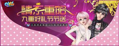 日月梭飞,转盼重阳,登高望远,都下赏菊,不亦乐乎。重阳节在我国古代可是个相当热闹的节日,现在久居都市的人们也许没有高山可攀,没有满园菊花可赏,10月22日-10月28日,却有《QQ炫舞》为您精心安排的过节活动,老少皆宜,花式多多,还有喻意“重阳九月九”的九重好礼相送呢。用高科技方式回味传统佳节浓浓气氛,拉近五湖四海好友间心与心的距离。