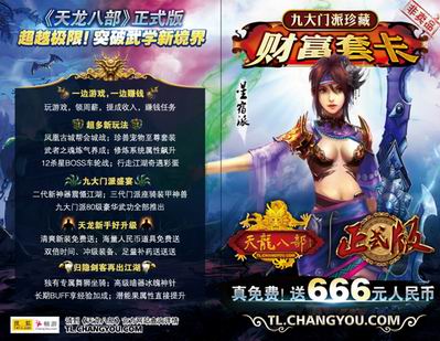 一边游戏,一边赚钱!价值人民币666元的大礼免费送,做手工装备、帮派任务等等必不可少的财富,新手升级保驾护航的法宝,哪一样不是玩家梦寐以求的呢!本次财富卡更是别具一格,封面的九大门派美女云集,你搜集齐9种财富套卡了吗?另外,还有国宝大熊猫的玩偶海量送出,参与即有机会赢取,让游戏中贪吃的“天天”、“龙龙”到现实中陪伴你吧!