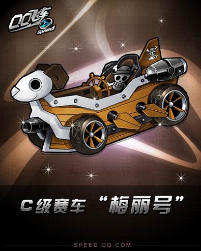 曾被圣十字军团演绎《海贼王》追忆黄金梅丽号中深深的友情所深深感动,盼望着有一天也能拥有属于自己的“梅丽号”,结交志同道合的战友,开启刺激冒险的海上寻宝征程!《海贼王》中经过大风大浪的“梅丽号”在飞车设计者的精心改进下,已经被打造成一辆古色古香充满海盗色彩的海盗赛车了。“梅丽号”曾横扫16世纪的加勒比,成为家喻户晓的一艘战船。车版「梅丽号」同样霸气十足,风格迥然。车身采用轻质板材与高科技精密钢材,古朴而典雅,时尚而脱俗,远看就是一艘战船,近看才知是赛车。该车外形奇特,车上的骷髅头标志更是别具一格,车上配备精密仪器,船尾还携带两颗导弹,时刻提防受到狙击。