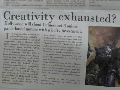 Is it coming on the doomsday of creativity industry in Hollywood? I have no idea.