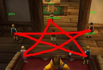 因此现在我对那6个魔鬼代言人感到非常好奇。我叫了2个工会朋友一起帮忙调查,包括以前看见过这幕的那个人。他们中的一个意识到房间里的配乐非常的KB,并且只有在进入这间房间时才会播放。我的另一个工会朋友注意到这些孩子是按照五芒星的形状站立的。于是,在这么多耸人听闻的事件以后,我们无里头的人为暴风城用这些孩子来酿酒,或者这些孩子会带来天灾的入侵。又或者那个女人杀了她的丈夫并把尸体藏在了柜子下面。