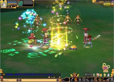 以圣女魔法为例,在BOSS激战中,圣女所附有的“神圣惩罚”将以触发者的元神为引,召唤无数的神灵,在触发者周身形成由内及外两层互相作用的反转力,而产生强大的爆破威力,对敌人造成致命伤害。在实施这一魔法时,将会产生一幅令人炫目,艳光四射,摄人心魂的圆形光柱震撼画面,动感十足,效果立体,画面强劲,堪比3D大片。