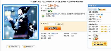 《天之痕OL》激活码遭哄抢 网购竞开天价