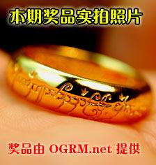 本次活动的地址跃马旅店的欢庆之地,奖品是由制作游戏电影周边的奥格瑞玛OGRM.NET公司专门提供的,24K的镀金戒指颇为华丽,适合各种男女佩戴,除了带在手指上(或许可以隐身),还赠送与电影原著中相同的合金挂链,可以如霍比特人那样戴在脖子上,非常有趣。