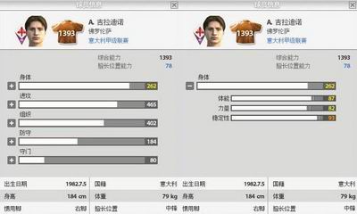在大雨中的圣西罗,若不是运气垂青,国米很可能等不来最后的幸运点球。在胶着了整个上半场和下半场的大半时间之后,第80分钟吉拉迪诺的个人表演几乎已经毁灭了国米,在反击中佛罗伦萨后场发动长传,吉拉迪诺背对防守队员胸部停球直接挑球转身甩开国米的后卫卢西奥和萨穆埃尔,这一次过人不仅技术动作流畅而且将《FIFA online 2》中吉拉迪诺262点的身体素质数值体现的淋漓尽致,萨穆埃尔虽然是后卫里身体条件出众一类,但《FIFA online 2》256点身体素质不仅和吉拉有所差距,重要的体能和稳定性两项数值也和年轻4岁的对手无法抗衡。游戏里如此,现实中当然也不能逃避,在已经明显无法阻挡突破的情况下甚至拉拽犯规都没能阻挡吉拉迪诺的致命一击,吉拉战胜了后卫,射门越过了门将,但却没能躲过门柱的无情……球打在立柱左侧弹出底线。