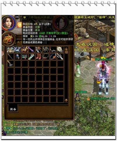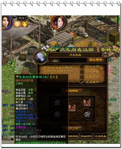 工资买来的装备,5件黄装有几率提升成一件绿装,5件绿色非完美装有几率提升成一件完美绿装(失败后5件装备全部消失);用4件绿色完美装作为辅装备有几率将主绿色完美装直接提升成绿15星装,用4件绿15星装或紫装作为辅装备有几率将主绿色完美装提升成紫装(失败后主装备在,辅装备消失。也可用祝福石祝福成紫)。