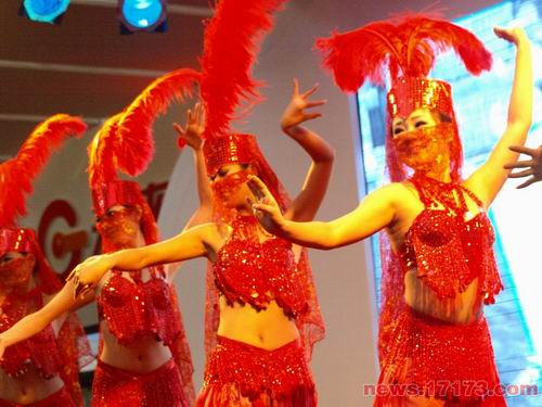 多图:薄纱遮面 盛大展台红衣女郎热舞