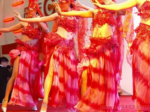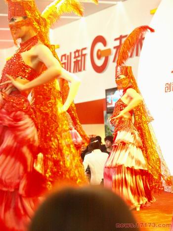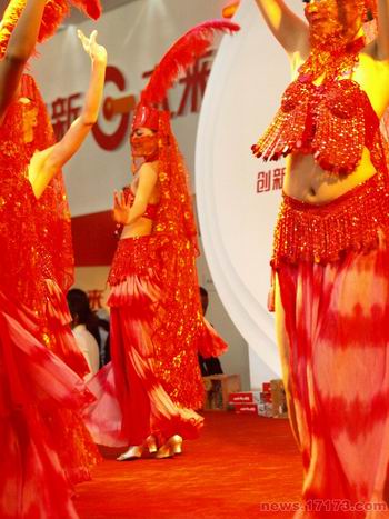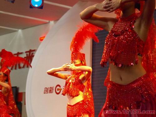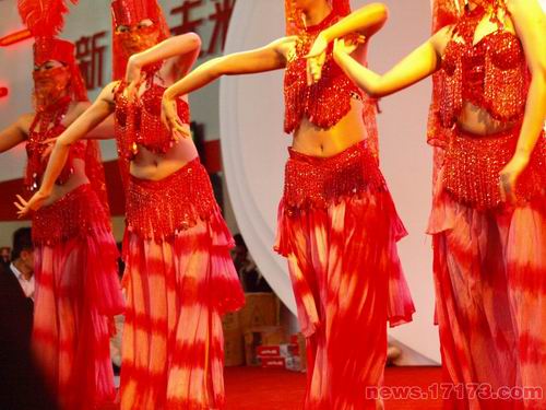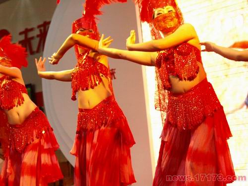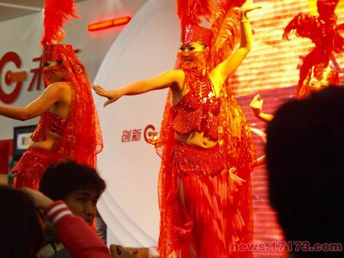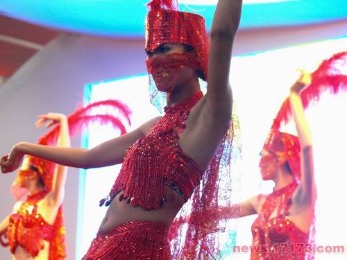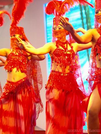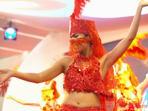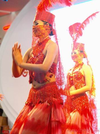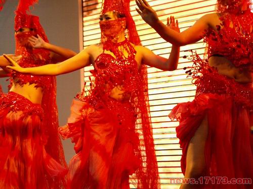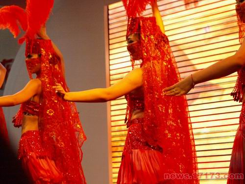 多图:薄纱遮面 盛大展台红衣女郎热舞