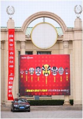 这就是北京展览馆的外面,盛大游戏8个脸谱的海报格外醒目