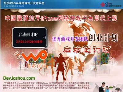 中国联通则加紧全国范围3G业务布局,在11月千家网点发售的iPhone3G手机中,绑定“联通拉手网络游戏平台”,推出《开发团队创业计划》,各游戏开发商提交的合作游戏,一经合作,即可获得平台的统一玩家、付费接口和SDK、服务器、和带宽资源。同时今年在全国范围掀起的将带宽从1M提升到2M的升级运动,主导抓住家庭用户,将游戏娱乐和生活类应用(网络DVD、FEMTO、网络冲印等)共享。