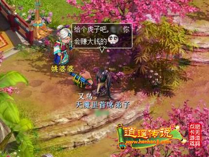 首席弟子,一跪求子接下来上场的就是逍遥的可爱子女了。此次新版本中,逍遥子女超乎想象地受到各方人士的热烈欢迎,连以忍法闻名于世的天魔里首席弟子都为之倾倒,在逍遥“子女主任”姚婆婆前下跪求虎子。如此感人事迹,可歌可泣!